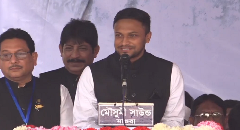 আসন্ন দ্বাদশ জাতীয় সংসদ নির্বাচনকে সামনে রেখে নির্বাচনী প্রচারনায় প্রধানমন্ত্রী শেখ হাসিনার জনসভায় যোগ দিয়েছেন জাতীয় ক্রিকেট দলের অধিনায়ক সাকিব আল হাসান। মঙ্গলবার (জানুয়ারি ০২) শহরের সরকারি রাজেন্দ্র কলেজ মাঠে আয়োজিত এ নির্বাচনী জনসভায় বক্তব্য দিয়েছেন তিনি। সাকিব আল হাসান জনসভায় পৌঁছালে তাকে ঘিরে ধরেন ভক্তরা। এ সময় অনেককে মোবাইলে সেলফি তুলতে দেখা যায়। পরে তিনি মঞ্চে নির্দিষ্ট আসন অলংকৃত করেন।