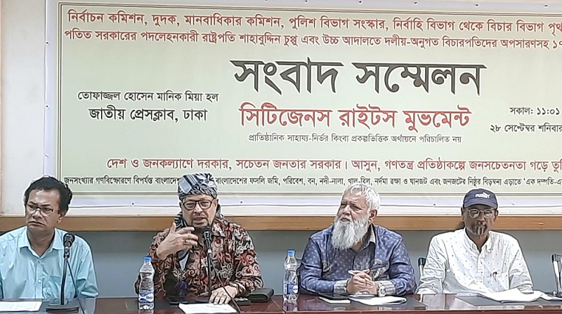 এবার দেশের বর্তমান রাষ্ট্রপতি মো. সাহাবুদ্দিন এবং উচ্চ আদালতে নিয়োগ পাওয়া দলীয় বিচারপতিদের অপসারণসহ ১৭ দফা দাবি জানিয়েছে সিটিজেন রাইটস মুভমেন্ট। একইসঙ্গে নির্বাচন কমিশন, দুদক, মানবাধিকার কমিশন, পুলিশ বিভাগ সংস্কারসহ নির্বাহী বিভাগ থেকে বিচার বিভাগ আলাদা করার দাবিও জানিয়েছেন তারা। শনিবার (২৮ সেপ্টেম্বর) জাতীয় প্রেস ক্লাবের তফাজ্জল হোসেন মানিক মিয়া হলে এক সংবাদ সম্মেলনে সংগঠনটির পক্ষ থেকে এসব দাবি তুলে ধরা হয়। এসময় মহাসচিব তুসার রেহমানসহ বিভিন্ন পর্যায়ের নেতাকর্মীরা উপস্থিত ছিলেন।