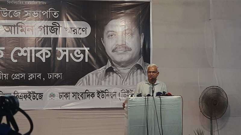 মঙ্গলবার (১ অক্টোবর) বাংলাদেশ ফেডারেল সাংবাদিক ইউনিয়নের (বিএফইউজে) সাবেক সভাপতি মরহুম রুহুল আমীন গাজীর স্মরণে আয়োজিত নাগরিক শোকসভায় অন্তর্বর্তী সরকারকে উদ্দেশ করে এ মন্তব্য করেন তিনি।