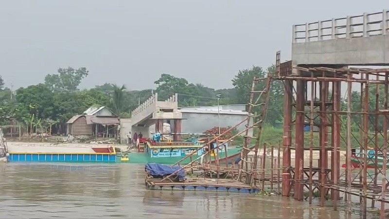 শরীয়তপুরে বালুভর্তি বলগেটের ধাক্কায় ভেঙ্গে পড়েছে নির্মাণাধীন সেতু