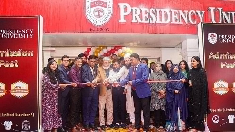 প্রেসিডেন্সি ইউনিভার্সিটিতে অ্যাডমিশন ফেস্ট শুরু হয়েছে। এই ফেস্টে শিক্ষাপ্রতিষ্ঠানটি ৭টি বিভাগের অধীনে ১২টি প্রোগ্রামে ভর্তি হওয়া শিক্ষার্থীদের জন্য বিশেষ ছাড়, ভর্তি ফি ৫০ শতাংশ ছাড় এবং টিউশন ফিতে স্পেশাল ছাড় দিচ্ছে। এ ছাড়াও ভর্তিতে মিলছে আকর্ষণীয় উপহার।