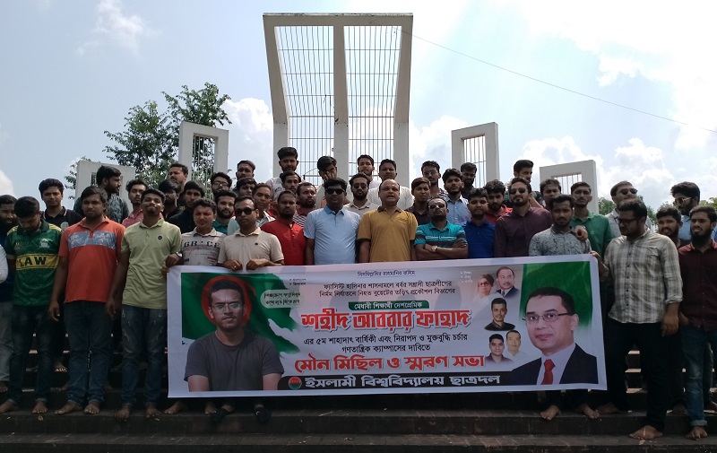 মানিক হোসেন, ইবি: ছাত্রলীগের হামলায় নিহত বাংলাদেশ প্রকৌশল বিশ্ববিদ্যালয়ের (বুয়েট) শিক্ষার্থী আবরার ফাহাদের ৫ম মৃত্যুবার্ষিকী উপলক্ষে ইসলামী বিশ্ববিদ্যালয়ে মৌন মিছিল ও স্মরণসভা করা হয়েছে।
