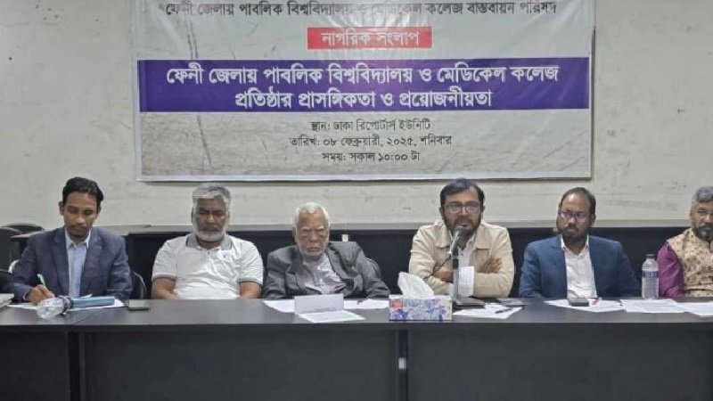 গতকাল শনিবার (৮ ফেব্রুয়ারি) সকালে ঢাকা রিপোর্টার্স ইউনিটি মিলনায়তনে ‘ফেনী জেলায় পাবলিক বিশ্ববিদ্যালয় ও মেডিকেল কলেজ প্রতিষ্ঠা : প্রেক্ষাপট ও প্রয়োজনীয়তা’ শীর্ষক নাগরিক সংলাপে বক্তারা এসব কথা বলেন। ফেনী জেলায় পাবলিক বিশ্ববিদ্যালয় ও মেডিকেল কলেজ বাস্তবায়ন পরিষদের আহ্বায়ক অধ্যাপক আবু আহমেদের সভাপতিত্বে এবং সদস্য সচিব সাইদুল ইসলামের পরিচালনায় এই সংলাপ অনুষ্ঠিত হয়।