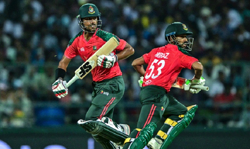 লক্ষ্য তাড়া করতে নেমে শুরুতেই ব্যাট হাতে ঝড় তোলেন পাথুম নিশাঙ্কা ও কুশাল মেন্ডিস। পাওয়ার প্লেতেই তুলে ফেলেন ৮৩ রান। ৩১ বলে হাফসেঞ্চুরি করেন মেন্ডিস। নিশাঙ্কা ৪২ রানে আউট হন মিরাজের বলে। ২৪ রান করা কুশাল পেরেরাকে ফিরিয়ে দেন রিশাদ হোসেন।