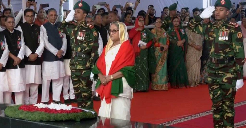 বঙ্গবন্ধুর প্রতিকৃতিতে প্রধানমন্ত্রীর শ্রদ্ধা