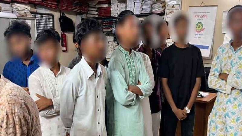 আটককৃতরা হলেন সাইফুল ইসলাম, আব্দুর রহমান জাহেদ, আরাফাত হোসেন মিনহাজ, আশরাফুল জামাল রিয়াদ, ফোরকান, ইয়াছিন আরাফাত, আব্দুল করিম আদর, আবু হাছনাইন বিজয়, ইকবাল, আশিকুল ইসলাম আকাশ, শরীফুল ইসলাম এবং আকিফুল ইসলাম আকিব। তাদের প্রত্যেকের বয়স ১৭ থেকে ১৮ বছরের মধ্যে।