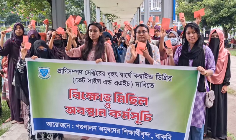 বাহা’কে বাকৃবির পশুপালন অনুষদের শিক্ষার্থীদের লাল কার্ড প্রদর্শন
