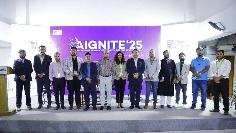 উত্তরা ইউনিভার্সিটিতে ‘এআইগনাইট-২৫ কৃত্রিম বুদ্ধিমত্তায় বাংলাদেশের তরুণদের ক্ষমতায়ন’ শীর্ষক সেমিনার অনুষ্ঠিত হয়েছে। বৃহস্পতিবার (১৪ আগস্ট) বিশ্ববিদ্যালয়ের মাল্টিপারপাস হলরুমে সেমিনারে দেশের খ্যাতিমান পেশাজীবী, শিক্ষাবিদ, উদ্যোক্তা ও উদ্ভাবকদের একত্র হয়েন। তারা ইউনিভার্সিটির শিক্ষার্থীদের কৃত্রিম বুদ্ধিমত্তার সম্ভাবনাকে কাজে লাগাতে অনুপ্রাণিত করেন ও বিভিন্ন দিকনির্দেশনা প্রদান করেন।
