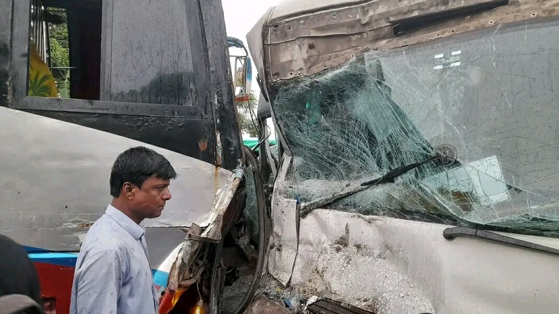 ইবির শিক্ষকবাহী কোস্টারের সাথে যাত্রীবাহী বাসের মুখোমুখি সংঘর্ষ