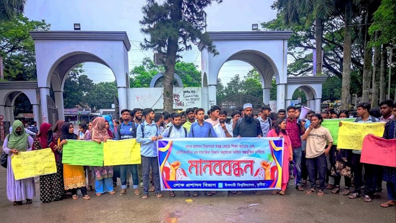 দুই দফা দাবিতে ইবি শিক্ষার্থীদের মানববন্ধন