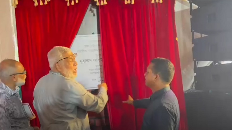 ফলকে নাম দেখে উপদেষ্টা বললেন, ‘এটা কি আমার বাপের টাকায় করছে’