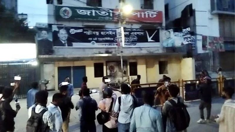 সন্ধ্যার পর জাতীয় পার্টির কেন্দ্রীয় কার্যালয়ে ভাঙচুর, অগ্নিসংযোগ