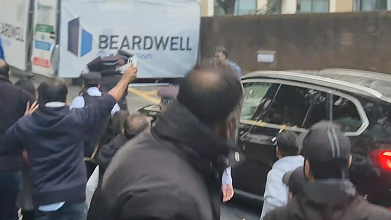 প্রত্যক্ষদর্শীরা জানান, ক্যাম্পাস থেকে বাংলাদেশ হাইকমিশনের একটি কালো বিএমডব্লিউ গাড়ি বের হওয়ার সময় আওয়ামী লীগের নেতা–কর্মীরা সেটির সামনে শুয়ে পড়ার চেষ্টা করেন। পরে উপদেষ্টার গাড়িকে লক্ষ্য করে ডিম নিক্ষেপ করেন তারা। তবে পুলিশ দ্রুত হস্তক্ষেপ করে পরিস্থিতি নিয়ন্ত্রণে আনে এবং গাড়িটি নিরাপদে সরিয়ে নেয়।
