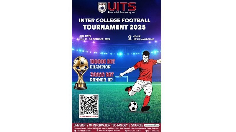 বাংলাদেশের প্রথম তথ্যপ্রযুক্তি ও বিজ্ঞানভিত্তিক বেসরকারি বিশ্ববিদ্যালয় ইউনিভার্সিটি অব ইনফরমেশন টেকনোলজি অ্যান্ড সায়েন্সেস (ইউআইটিএস) আগামী অক্টোবর মাসে নিজস্ব খেলার মাঠে আয়োজন করতে যাচ্ছে বহুল প্রতীক্ষিত আন্তঃকলেজ ফুটবল টুর্নামেন্ট ২০২৫। টুর্নামেন্টে রেজিষ্ট্রেশন করা যাবে ২৫ সেপ্টেম্বর ২০২৫ খ্রি. পর্যন্ত। আগামী ১৫ অক্টোবর ২০২৫ তারিখে জমকালো আয়োজনে আসন্ন টুর্নামেন্টের উদ্বোধন করা হবে। দুই সপ্তাহব্যাপী টানটান উত্তেজনাপূর্ণ প্রতিযোগিতার পর ৩০ অক্টোবর ২০২৫ তারিখে গ্র্যান্ড ফাইনালের মধ্য দিয়ে এই বর্ণাঢ্য আয়োজনের পরিসমাপ্তি ঘটবে। প্রতিযোগিতা অনুষ্ঠিত হবে গ্রুপ পর্ব, কোয়ার্টার ফাইনাল, সেমিফাইনাল ও ফাইনাল ধাপে। বিজয়ী দল পাবে ১,০০,০০০ টাকা এবং রানার্স-আপ দল পাবে ৫০,০০০ টাকা।