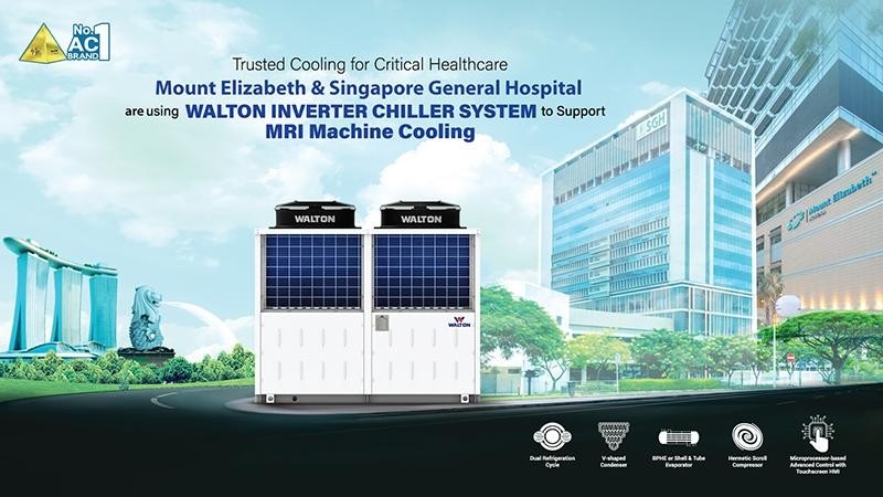 উন্নত শিক্ষা, স্বাস্থ্যসেবা, মানব উন্নয়ন সূচক, মাথাপিছু জিডিপি এবং উচ্চ আয়ের দিক থেকে উন্নত দেশগুলোর মধ্যে অন্যতম সেরা অবস্থানে রয়েছে দক্ষিণ এশিয়ার দেশ সিঙ্গাপুর। দেশটির বিশ্বখ্যাত মাউন্ট এলিজাবেথ এবং জেনারেল হাসপাতালের প্রসেস কুলিং এ ব্যবহার করা হচ্ছে বাংলাদেশের এয়ার কন্ডিশনার ব্র্যান্ড ওয়ালটনের এয়ার কুলড স্মার্ট ইনভার্টার চিলার। এর মধ্য দিয়ে বিশ্ব দরবারে হাই-টেক পণ্য উৎপাদনে বাংলাদেশের প্রযুক্তিগত উন্নয়ন, অগ্রগতি ও সক্ষমতা প্রকাশের ক্ষেত্রে এক বিরাট মাইলফলক অর্জিত হয়েছে বলে মনে করছেন শিল্প সংশ্লিষ্টরা।