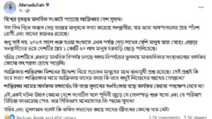 এবার আফ্রিকার দেশ সুদানে গণহত্যা নিয়ে ফেসবুকে একটি পোস্ট করেছেন জনপ্রিয় ইসলামি বক্তা ও আস-সুন্নাহ ফাউন্ডেশনের চেয়ারম্যান শায়খ আহমাদুল্লাহ।