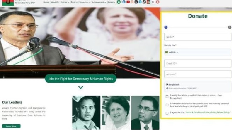 নতুন আঙ্গিকে বিএনপির ওয়েবসাইট, দেওয়া যাবে অনুদানও