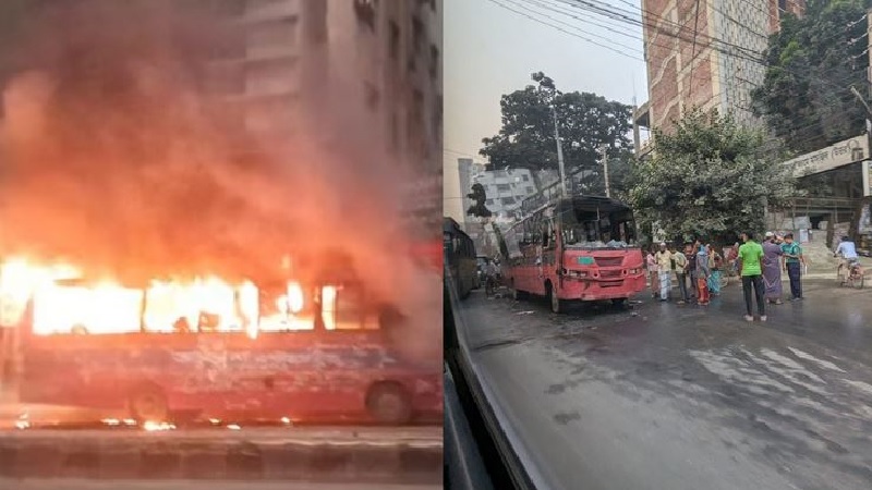 সকাল না হতেই রাজধানীতে দুই বাসে আগুন