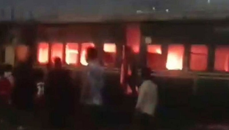 রাজধানীর তেজগাঁওয়ে ট্রেনের কোচে আগুন