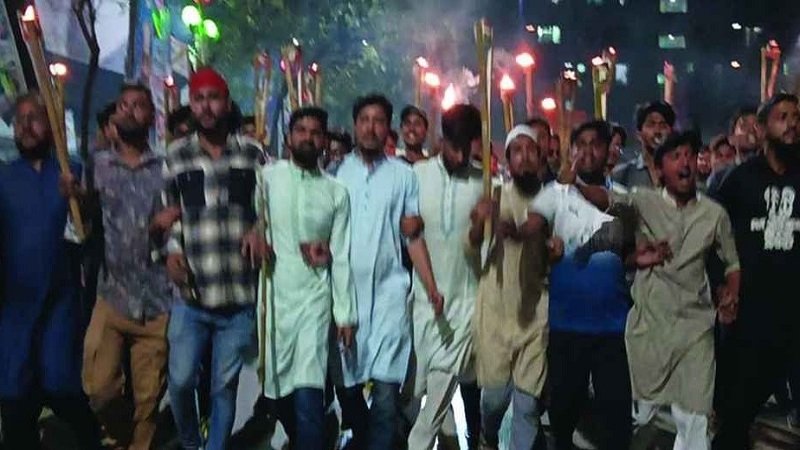 নারায়ণগঞ্জে জাতীয় নাগরিক পার্টির (এনসিপি) মশাল মিছিলে ‘জয় বাংলা’ স্লোগান দেয়ায় উত্তেজনা সৃষ্টি হয়। হঠাৎ ঘটে যাওয়া এ ঘটনায় মিছিলে বিশৃঙ্খলা দেখা দিলেও বড় কোনো অপ্রীতিকর পরিস্থিতি ছাড়াই তা শেষ হয়। বুধবার (১২ নভেম্বর) রাত ১০টার দিকে নারায়ণগঞ্জ কেন্দ্রীয় শহীদ মিনার থেকে আওয়ামী লীগের ঘোষিত ১৩ নভেম্বরের লকডাউন কর্মসূচির প্রতিবাদে এই মশাল মিছিল বের করা হয়।