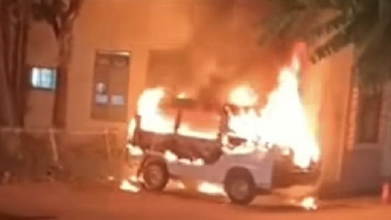হাসপাতালের ভেতরে অ্যাম্বুলেন্সে আগুন দিলো দুর্বৃত্তরা