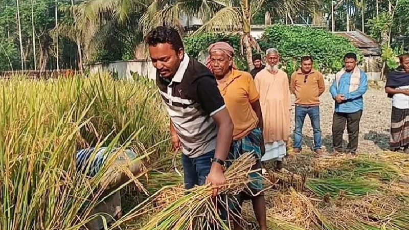গণসংযোগকালে কৃষকের ধান কেটে দিলেন বিএনপি প্রার্থী রওনক