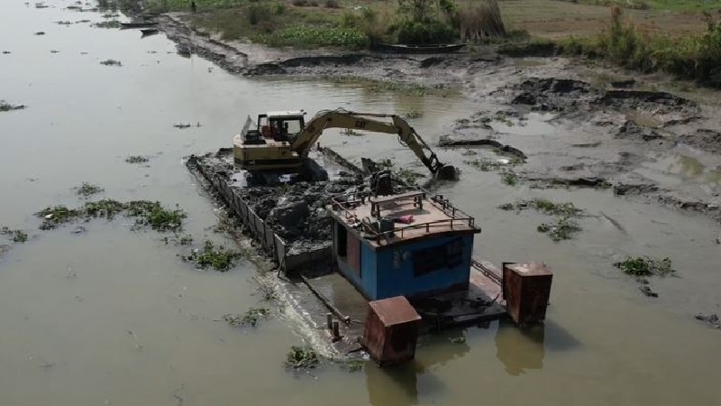 প্রকাশ্যে নদী থেকে মাটি লুট করে নিয়ে যাচ্ছেন বিএনপি নেতা মাহফুজ