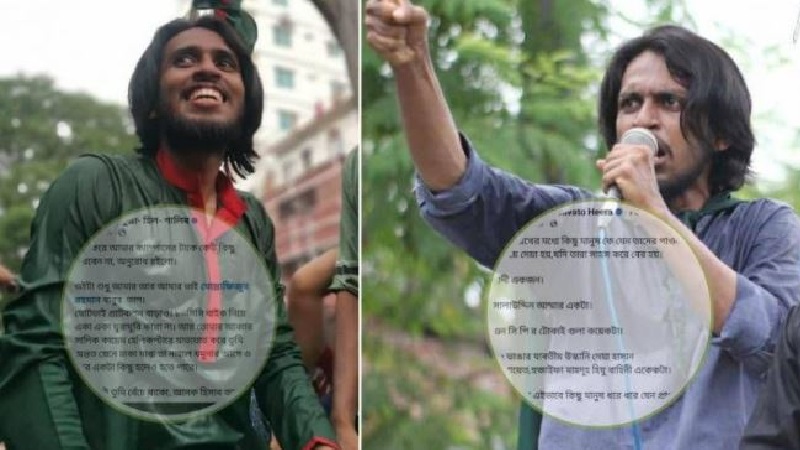 ড্যাল্টন সৌভত হীরা নামের ফেসবুক আইডির ৯ নভেম্বর দেওয়া উসকানিমূলক ওই পোস্টে লেখা হয়, ‘১৩ তারিখের মধ্যে কিছু মানুষের পাওনাটুকু যেন বুঝিয়ে দেয়া হয় যদি তারা সাহস করে বের হয়– হাদি একজন, সালাহউদ্দিন আম্মার একটা, এনসিপির টোকাইগুলো কয়েকটা, ৩২ ভাঙার যাবতীয় উসকানি দেয়া হাসান রোবায়েত, হুজাইফা, মাহদূহ, হিযু বাহিনীর একেকটা।’ ফ্যাসিস্টবিরোধী আন্দোলনের বিপ্লবীদের নিরাপত্তা জোরদার করা জরুরি উল্লেখ করে রাজশাহী বিশ্ববিদ্যালয়ের প্রফেসর ড. মো. ফজলুল হক বলেন, বিপ্লব পরবর্তী সময়ে বিপ্লবীরা নানাভাবে হুমকি ও আক্রমণের শিকার হচ্ছে। তাদের নিরাপত্তা জোরদার করতে সরকারের জরুরি পদক্ষেপ নেওয়া জরুরি। নতুবা নিরাপত্তা ব্যবস্থা আরও ভেঙে পড়বে এবং জাতীয় সংসদ নির্বাচনের ওপর এর প্রভাব পড়তে পারে।