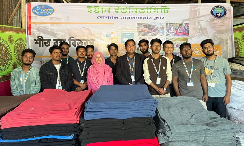 ইস্টার্ন ইউনিভার্সিটির সোশ্যাল ওয়েলফেয়ার ক্লাবের উদ্যোগে শীতার্তদের মাঝে কম্বল বিতরণ