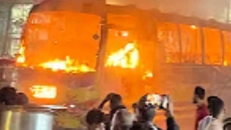 বাড্ডায় যাত্রীবাহী বাসে আগুন