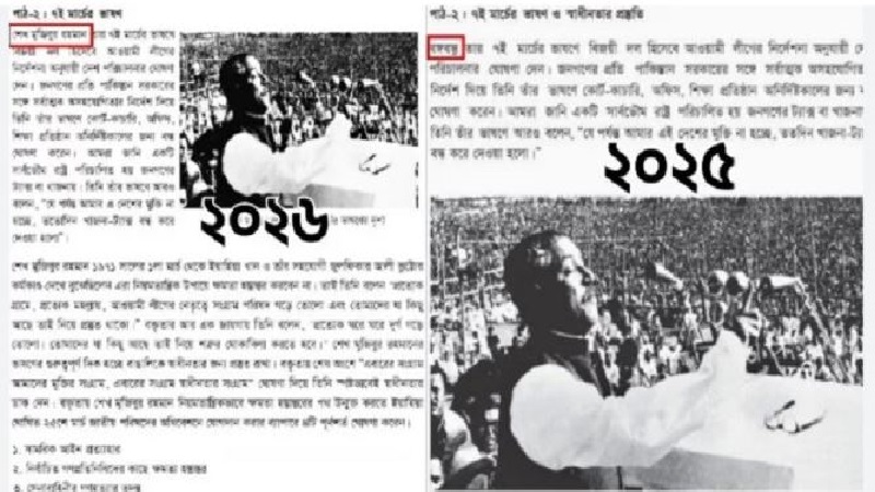 ২০২৬ শিক্ষাবর্ষের অষ্টম শ্রেণির ‘বাংলাদেশ ও বিশ্বপরিচয়’ পাঠ্যবইয়ের ‘বাংলাদেশের মুক্তিযুদ্ধ ও গণতান্ত্রিক সংগ্রাম’ শীর্ষক তৃতীয় অধ্যায়ের ‘পাঠ–২: ৭ই মার্চের ভাষণ’-এ দেখা গেছে, সাতটি স্থানের মধ্যে ছয়টিতে ‘বঙ্গবন্ধু’-র পরিবর্তে ‘শেখ মুজিবুর রহমান’ লেখা হয়েছে। তবে একটি স্থানে এখনো ‘বঙ্গবন্ধু’ শব্দটি রয়ে গেছে। এনসিটিবি সূত্র আরও জানিয়েছে, পাঠ্যবইয়ের শিরোনাম বা ঐতিহাসিক উপাধি হিসেবে যেখানে শেখ মুজিবুর রহমানের নাম ‘বঙ্গবন্ধু’ হিসেবে ব্যবহৃত হয়েছে, সেখানে তা সংশোধন করা হয়নি। তবে ব্যক্তিনামের ক্ষেত্রে ‘বঙ্গবন্ধু’ বাদ দিয়ে ‘শেখ মুজিবুর রহমান’ লেখা হয়েছে।