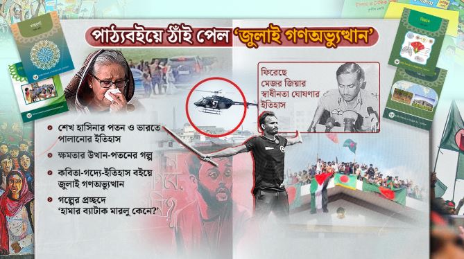 এবার জাতীয় শিক্ষাক্রম ও পাঠ্যপুস্তক বোর্ড (এনসিটিবি) এবার মাধ্যমিক স্তরের নতুন বইয়ে অন্তর্ভুক্ত করেছে বাংলাদেশের সাম্প্রতিক ইতিহাসের আলোচিত অধ্যায় ‘২০২৪ সালের জুলাই গণ-অভ্যুত্থান’। এ ছাড়া নতুন পাঠ্যবইগুলোতে স্থান পেয়েছে ২০২৪ সালের কোটা সংস্কার আন্দোলন থেকে উদ্ভূত জুলাই গণ-অভ্যুত্থান, আন্দোলন দমনে আইন-শৃঙ্খলা বাহিনীর হেলিকপ্টার থেকে গুলি চালানোর অভিযোগ ও ছাত্রলীগ-যুবলীগের দমনমূলক ভূমিকা; সেই সাথে সাবেক ফ্যাসিস্ট সরকারপ্রধান শেখ হাসিনার পতনসহ সমসাময়িক নানা ঘটনাবলি।