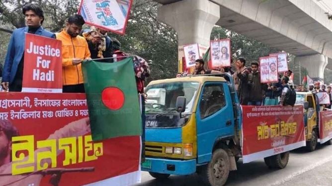 এবার শহীদ ওসমান হাদি হত্যার বিচার নিশ্চিত করাসহ চার দফা দাবি আদায়ে রাজধানীর বুকে ‘মার্চ ফর ইনসাফ’ বা ‘ইনসাফ যাত্রা’ শুরু করেছে ইনকিলাব মঞ্চ। আজ মঙ্গলবার (৬ জানুয়ারি) বেলা সাড়ে ১১টায় শাহবাগের হাদি চত্বর থেকে এই পথযাত্রা শুরু হয়। ইনকিলাব মঞ্চের নেতাকর্মীরা ১০টি পিক-আপ ভ্যানে চড়ে এই কর্মসূচিতে অংশ নিয়েছেন।