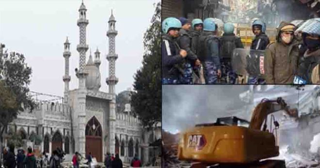 উচ্ছেদ অভিযানের প্রতিবাদ জানালে এলাকায় চরম উত্তেজনা ছড়িয়ে পড়ে। একপর্যায়ে পুলিশ স্থানীয় মুসল্লিদের ওপর টিয়ার গ্যাস ও লাঠিচার্জে পরিস্থিতি আরও ভয়াবহ রূপ নেয়। এতে অন্তত পাঁচজন পুলিশ আহত হওয়ার কথা জানানো হলেও স্থানীয়রা অভিযোগ করেছেন, বেশ কয়েকজন সাধারণ মানুষও আহত হয়েছে। ঘটনার পর পুরো এলাকায় বিপুল সংখ্যক পুলিশ মোতায়েন করা হয়েছে। পৌর কর্তৃপক্ষ জানিয়েছে, অভিযান ‘সফল’ হয়েছে এবং ধ্বংসস্তূপ সরানোর কাজ চলছে—যা মুসলিমদের চোখে তাদের ধর্মীয় অস্তিত্ব মুছে ফেলার আরেকটি পদক্ষেপ।
