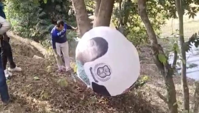 স্থানীয়দের ভাষ্য অনুযায়ী, ‘অস্বাভাবিক বড়’ ওই বেলুনটি একটি কৃষিজমিতে নেমে আসে। বিষয়টি দেখে আতঙ্কিত গ্রামবাসীরা প্রথমে গ্রাম প্রতিরক্ষা বাহিনীকে (ভিলেজ ডিফেন্স পার্টি—ভিডিপি) জানান। পরে ভিডিপি বিষয়টি পুলিশকে অবহিত করে।