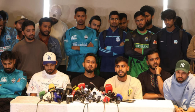 প্রথমে তামিম ইকবালকে ‘ভারতের দালাল’ বলা, তারপর ক্রিকেটারদের টাকার খোঁটা দেওয়া বিসিবি পরিচালক এম নাজমুল ইসলামের পদত্যাগের দাবিতে ধর্মঘট পালন করছেন ক্রিকেটাররা। এজন্য আজকের বিপিএল ম্যাচ অনুষ্ঠিত হয়নি। দিনের দ্বিতীয় ম্যাচটাও বাতিল হয়েছে। এমতাবস্থায় সংবাদ সম্মেলন করে নিজেদের অবস্থান পরিস্কার করেছেন ক্রিকেটাররা।