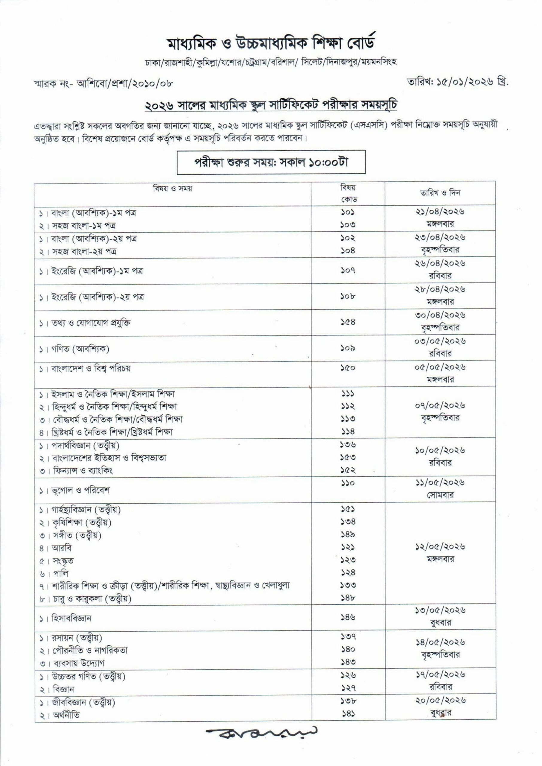 ২০২৬ সালের এসএসসি পরীক্ষার রুটিন প্রকাশ