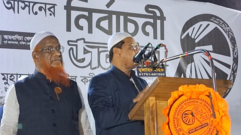 তিনি বলেন, বাংলাদেশের এই মুহূর্তে যারা নির্বাচনে প্রতিদ্বন্দিতা করছেন বিএনপি জোট বলেন অথবা জামায়াত জোট বলেন তারা কেউ ইসলামকে ক্ষমতায় নিতে চায় না। একমাত্র ইসলামী আন্দোলন বাংলাদেশ চায় ইসলামকে ক্ষমতায় নেয়ার জন্য। সেদিক থেকেই বলছি ইসলামী আন্দোলনের হাত পাখায় ভোট দিলে দুনিয়াতে শান্তি পাবেন এবং আখেরাতে মুক্তি পাবেন।