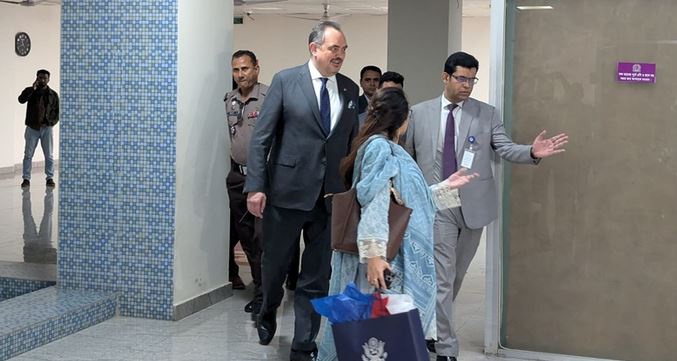 এর আগে বেলা ১১টার পর প্রধান নির্বাচন কমিশনার (সিইসি) এ এম এম নাসির উদ্দিনের সঙ্গে সাক্ষাৎ করতে ইসি ভবনে আসেন মার্কিন রাষ্ট্রদূত। ইসি সূত্রে জানা যায়, বৈঠকে সমসাময়িক রাজনৈতিক প্রেক্ষাপট ও দেশের আগামী নির্বাচন নিয়ে আলোচনা হয়েছে।