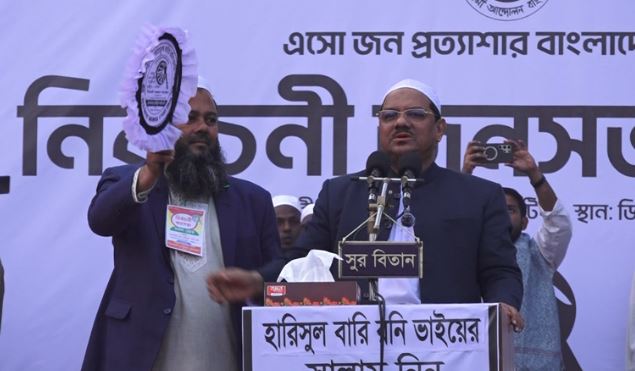 গতকাল বুধবার (২৮ জানুয়ারি) বিকেলে কুড়িগ্রামের নাগেশ্বরী ডিএম একাডেমি মাঠে আয়োজিত এক বিশাল নির্বাচনি জনসভায় প্রধান অতিথির বক্তব্যে তিনি এসব কথা বলেন। এ সময় তিনি কুড়িগ্রাম- ১ আসনের ইসলামী আন্দোলনের প্রার্থী হারিসুল বারী রনির হাতে হাতপাখা তুলে দিয়ে বলেন, আপনাদের কাছে আমানত রেখে গেলাম। রনিকে হাতপাখায় ভোট দিয়ে নির্বাচিত করবেন।