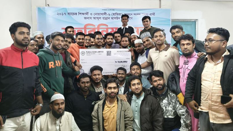 এবার নোয়াখালী-৬ (হাতিয়া) আসনের ১১ দলীয় জোট মনোনীত সংসদ সদস্য প্রার্থী ও জাতীয় নাগরিক পার্টির (এনসিপি) সিনিয়র যুগ্ম মুখ্য সমন্বয়ক আবদুল হান্নান মাসউদের নির্বাচনী তহবিলে ১০ লাখ টাকা অনুদান দিয়েছেন তার বন্ধু ও মাদরাসার সহপাঠীরা। সোমবার (২ ফেব্রুয়ারি) রাতে হাতিয়ার ওছখালীর একটি কমিউনিটি সেন্টারে ২০১৭ ব্যাচের শিক্ষার্থীদের আয়োজনে অনুষ্ঠিত পুনর্মিলনী ও মতবিনিময় সভায় বন্ধুদের পক্ষ থেকে এই অনুদানের চেক হস্তান্তর করা হয়।