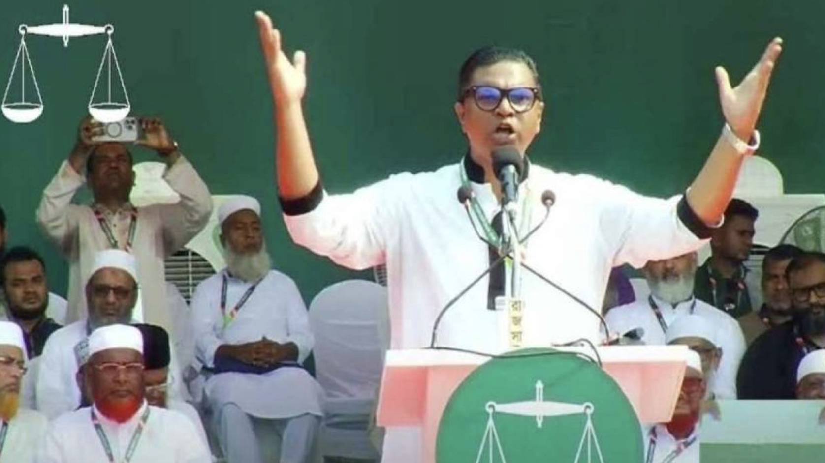 তিনি প্রশ্ন তুলে বলেন, ‘আজ ইনসাফ কোথায়? যে ইনসাফের খোঁজে আমরা ৫ আগস্ট হাজারো শহীদের রক্তের বিনিময়ে একটি নতুন বাংলাদেশ চেয়েছিলাম, সেই ইনসাফকে রুখে দেওয়ার জন্য কারা কাজ করছে, আমরা সেটা জানতে চাই। কারা হাদি হত্যার বিচার চায় না? কারা এই হত্যাকাণ্ডের তদন্ত চায় না? তদন্ত ও বিচার হলে কাদের নাম সামনে আসবে? কারা সেই নামগুলো রক্ষা করতে চায়? কারা ভারতের সেই সাতজন?’ তিনি বলেন, ‘আমরা তাদের নাম জানতে চাই। বিএনপি নিয়ে অনেক কিছু বলা হচ্ছে—ঠিক আছে। কিন্তু তাদের বিদেশে আরও একটি ঘটনা লুকিয়ে রাখা আছে। স্বাধীনতার বিচার হলে কাদের নাম নিতে হবে, কাদের নাম পাঠাতে হবে, কাদেরকে বিচারের মুখোমুখি করতে হবে সবকিছু আমরা জানতে চাই।’ রাশেদ প্রধান তার বক্তব্যে আরও বলেন, ‘লন্ডন থেকে এক নতুন মুফতি এসেছে—আপনারা জানেন কি না। আসার পর থেকেই তারা অসংখ্য স্বপ্ন দেখানো শুরু করেছে। তারা বলছে, তারা মা ও বোনদের হাতে কাক তুলে দেবে, সম্মান দেবে। এই ঘোষণা দিয়েই তারা জামায়াতে ইসলামীর নারী কর্মীদের ওপর হামলা শুরু করেছে।’