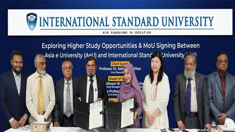 উচ্চশিক্ষা সম্প্রসারণ ও অ্যাকাডেমিক সহযোগিতা জোরদার করতে ইন্টারন্যাশনাল স্ট্যান্ডার্ড ইউনিভার্সিটি (আইএসইউ) ও মালয়েশিয়ার এশিয়া ই ইউনিভার্সিটি (এইউ)-এর মধ্যে সমঝোতা স্মারক (এমওইউ) স্বাক্ষরিত হয়েছে।