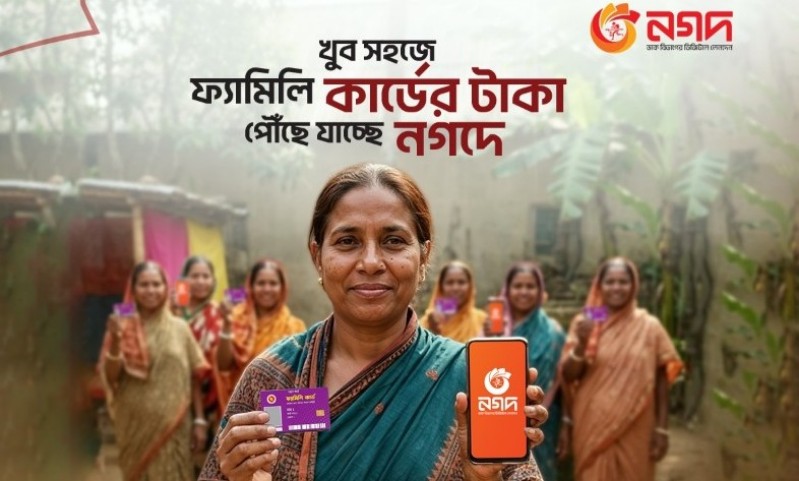 পরিবারের নারী প্রধানকে অর্থনৈতিকভাবে শক্তিশালী ও আরো আত্মবিশ্বাসী করতে সরকার যে ফ্যামিলি কার্ড বিতরণ শুরু করেছে সেখানে গুরুত্বপূর্ণ অবস্থানে রয়েছে মোবাইল আর্থিক সেবা নগদ।