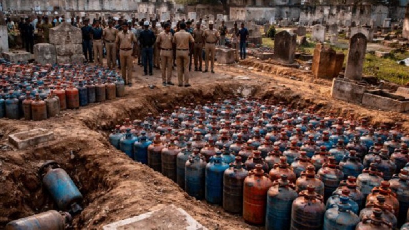ভারতে কবরস্থান থেকে ৪১৪ গ্যাস সিলিন্ডার উদ্ধার, গ্রেপ্তার ১০