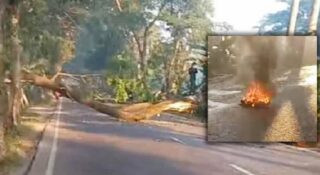 মহাসড়কে গাছ ফেলে নিষিদ্ধ আ.লীগের নেতাকর্মীদের অবরোধ, যানচলাচল বন্ধ