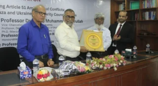 ইউনিভার্সিটি অব ইনফরমেশন টেকনোলজি অ্যান্ড সায়েন্সেস (ইউআইটিএস)-এর আইন অনুষদের মুট কোর্ট রুমে ‘রিভিসিটিং আর্টিকেল ৫১ এইমড গ্লোবাল কনফ্লিক্টস: ইনসাইটস ফ্রম গাজা অ্যান্ড ইউক্রেন ফর সিকিউরিটি কাউন্সেল রিফর্ম’ আন্তর্জাতিক আইন বিষয়ক বিস্তারিত