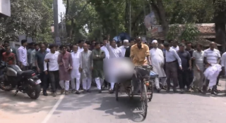 জামায়াত-বিএনপির সংঘর্ষে নিহতের মরদেহ ভ্যানে চড়িয়ে ঝিনাইদহে বিক্ষোভ