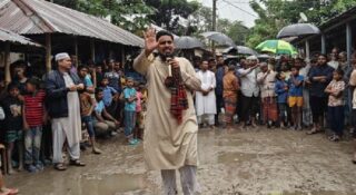 বক্তব্য দিতে কাদামাটিতে খালি পায়ে নেমে এলেন আখতার