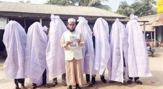কাফনের কাপড় পরে জাতীয় পার্টির প্রার্থীর নির্বাচনি প্রচারণা